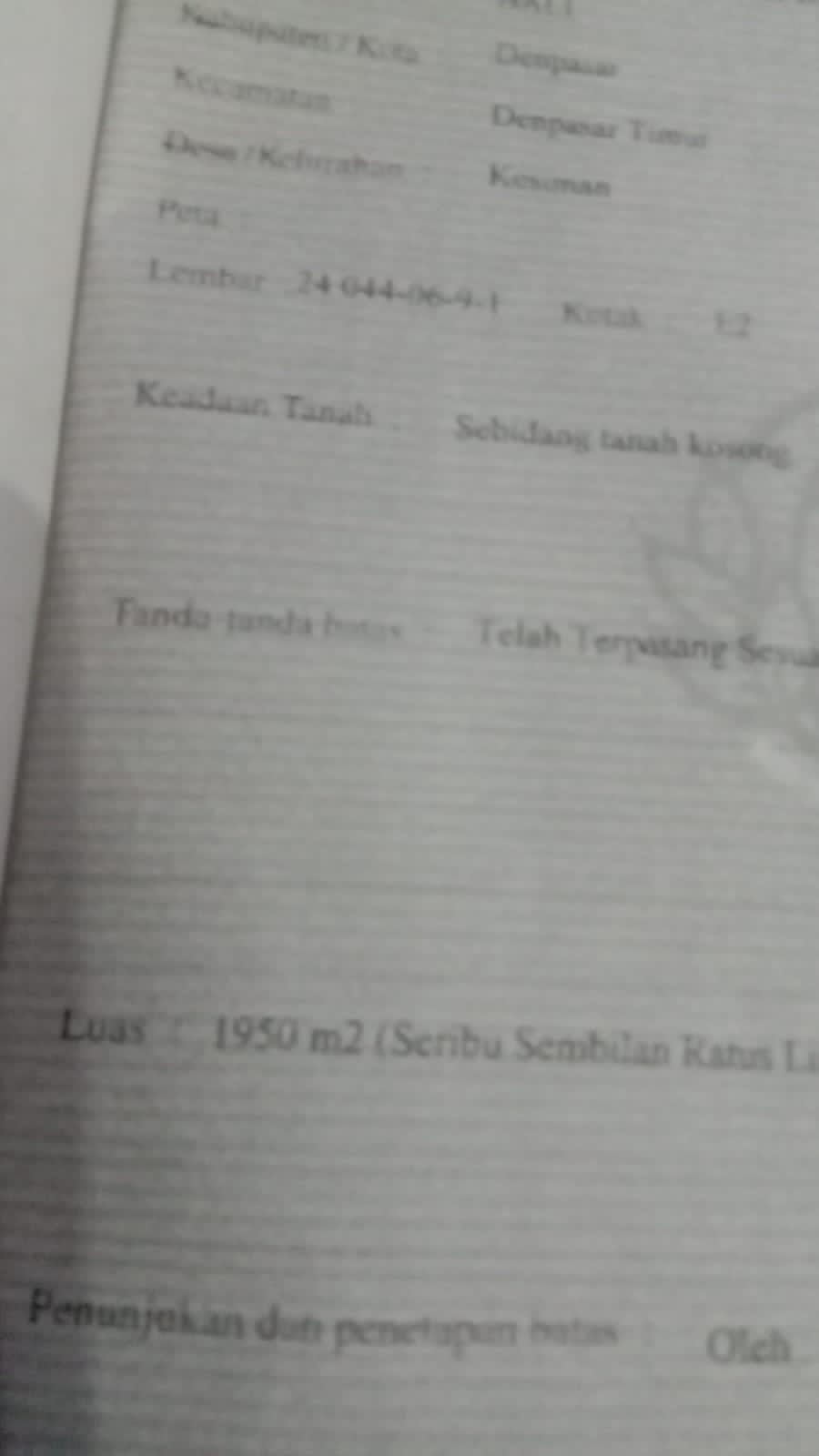 Dijual Tanah seluas 1950m2 Lebar depan 35 m, lebar jalan 5 m, lokasi dekat by pas +-120 m, hanya masuk lokasi melalui jalan masuk Jalan Sedap Malam. Lingkungan persawahan jalur hijau.